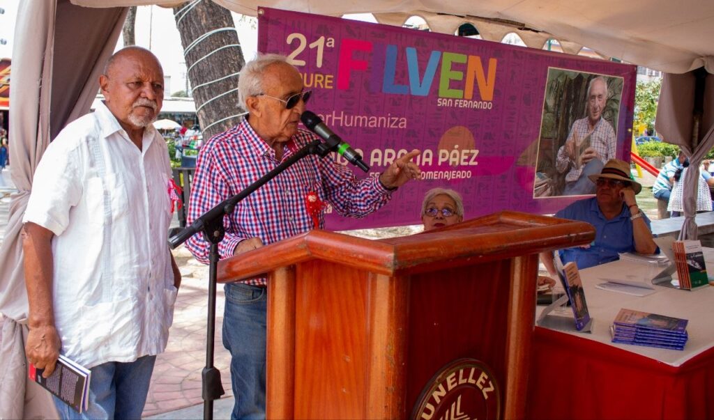 La Filven homenajea al escritor e historiador Hugo Arana Páez, quien ha realizado aportes históricos sobre San Fernando de Apure y es autor del libro “Borraduras de Ciudad”, publicado por la editorial El perro y la rana. El autor reiteró que este evento es un espacio para la convivencia. “Es un acto por la paz. Aquí venimos a dejar un mensaje para la paz, porque es el valor más importante”, expresó.