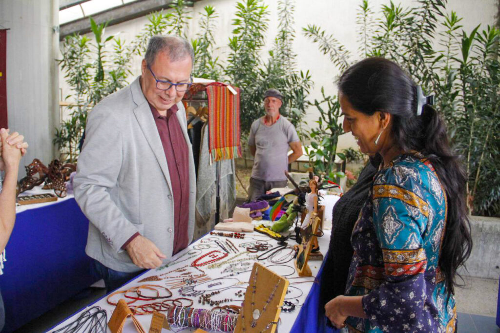 También recorrió el área donde creadores y creadoras de la Red de Arte tienen expuestas maravillas artesanales, como parte de la dinámica de intercambio de experiencias característico de la Filven.